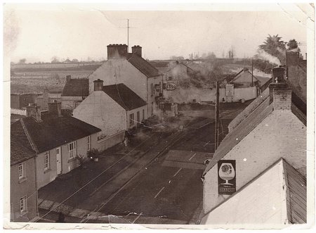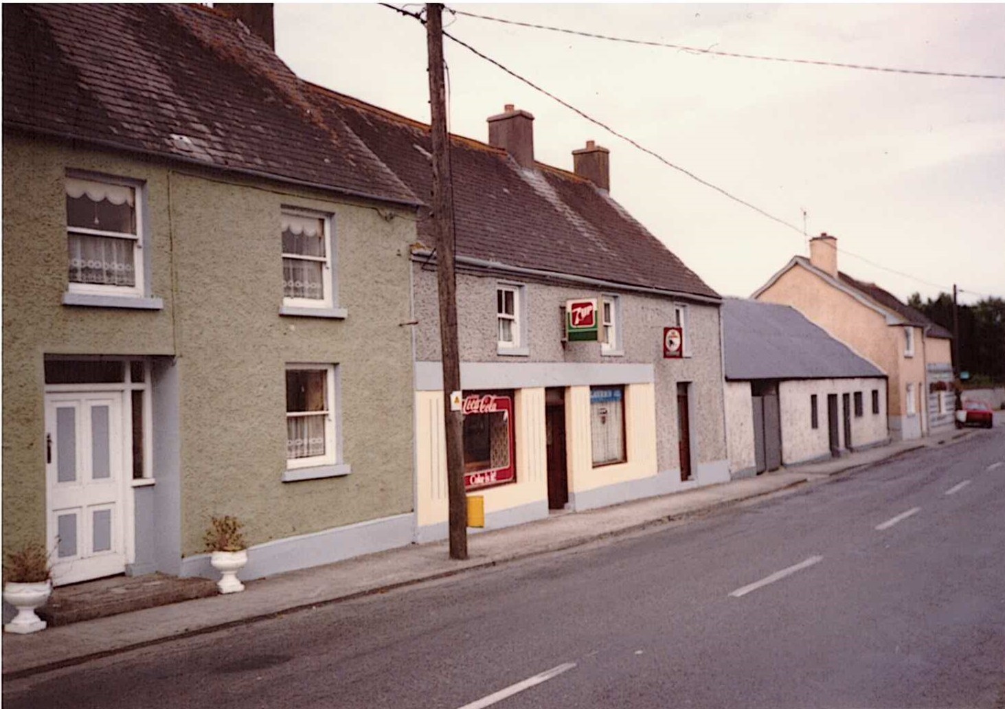 Old Riverstown showing old council houses by road and Kelly's house, pub without new extension, wall on lane went almost to roadway. |